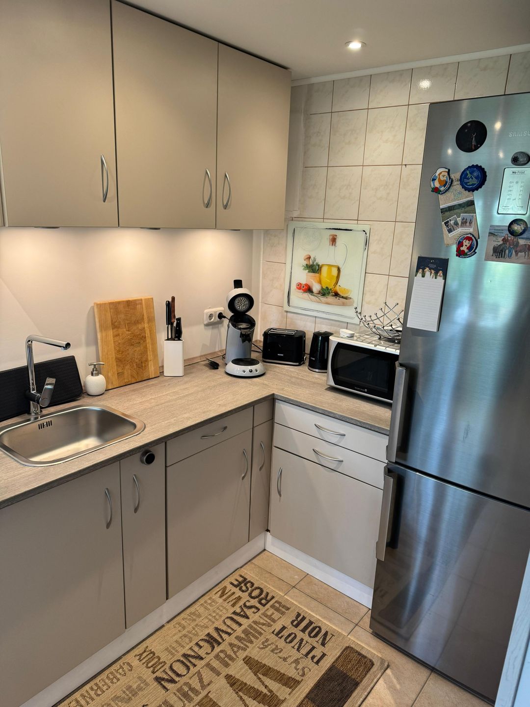 Das Ferienhaus Kiefernblick verfügt über eine gut ausgestattete Küche mit Backofen, Mikrowelle, Spülmaschine, Kühlschrank mit Gefrierfach, Kaffeemaschine, Toaster und Wasserkocher. Zur weiteren Ausstattung gehören WLAN, TV, Waschmaschine, Heizung, Fliegengitter sowie verschiedene praktische Details für den Familienurlaub.